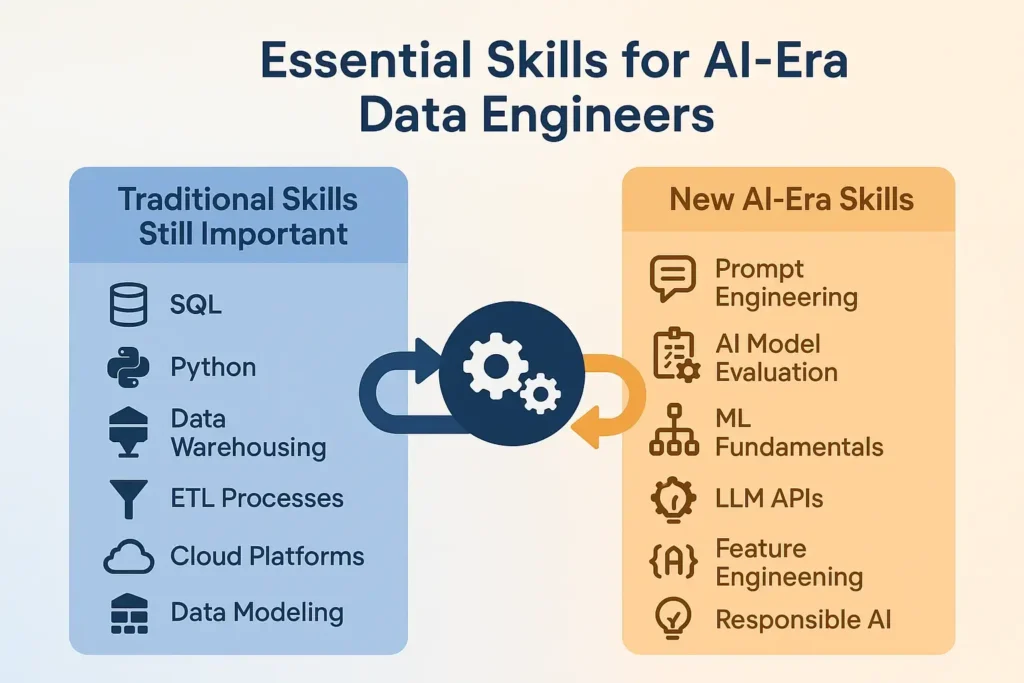 The skill set required for data engineers is shifting. While traditional technical skills remain important, new competencies are becoming critical: