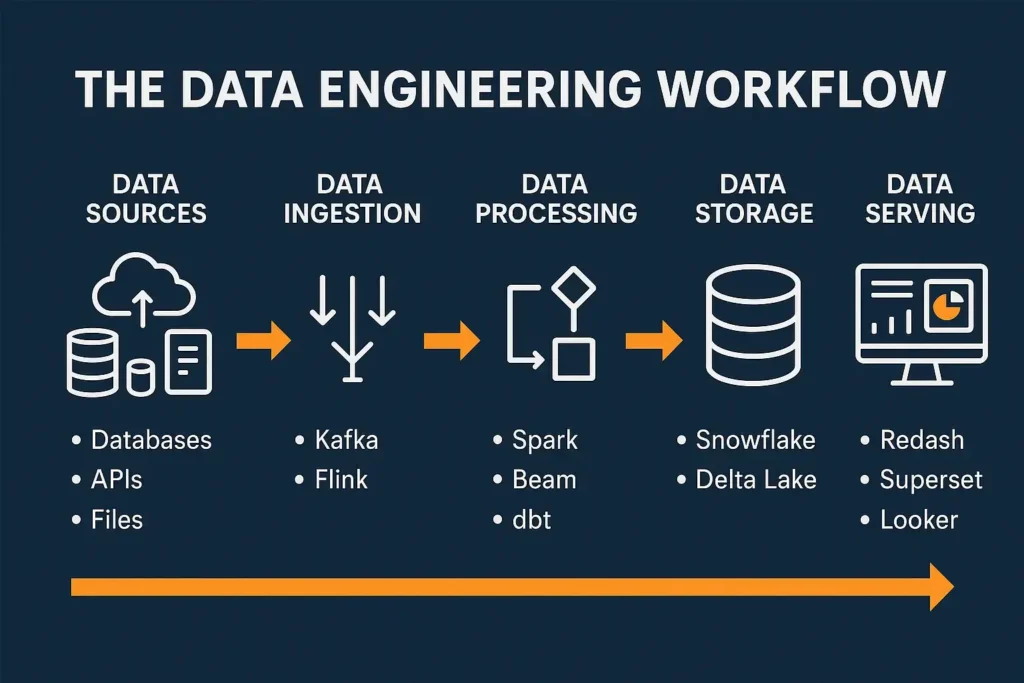 Data engineering is the discipline of designing, building, and maintaining the systems and architecture that enable data generation, storage, and analysis. Data engineers are the architects and construction workers of the data world they create the foundation upon which all data initiatives rest.