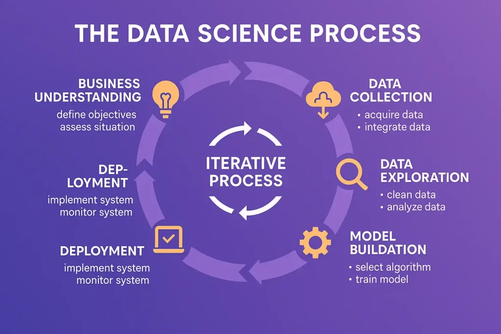 Data science is the practice of extracting knowledge and insights from data using statistical methods, machine learning algorithms, and domain expertise. Data scientists are the explorers and storytellers of the data world—they uncover hidden patterns and translate findings into business value.
